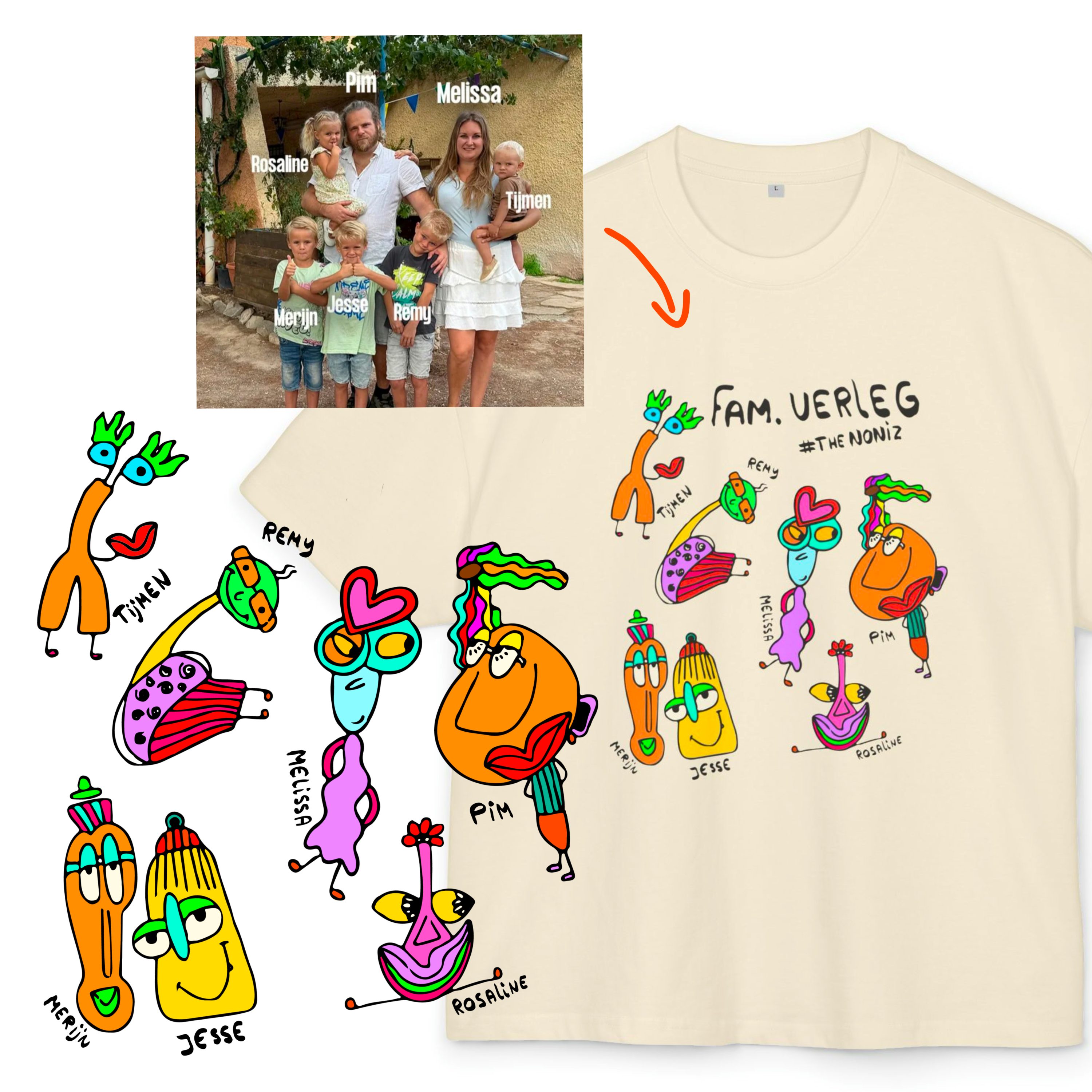 Send me your favorite photo: family, friends, or your dog in sunglasses, and I'll turn it into a hand-drawn T-shirt. Personal, full of love, and guaranteed to bring a smile!